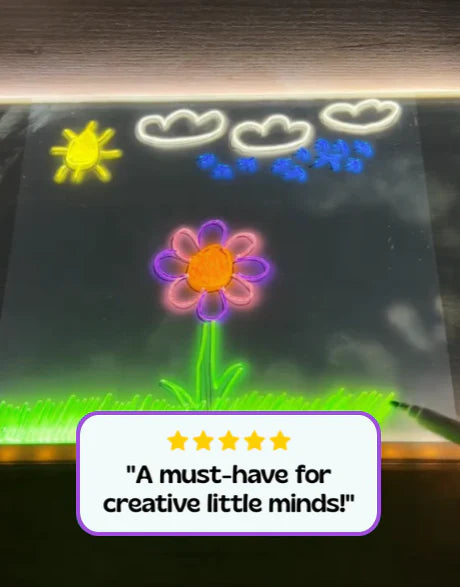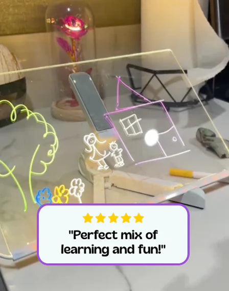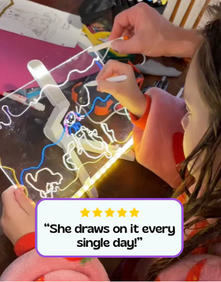 Watch as their simple sketches glow with vibrant LED light, turning into glowing masterpieces. This fun, interactive experience encourages creativity and lets young artists experiment, express, and refine their skills - all while having a blast!
