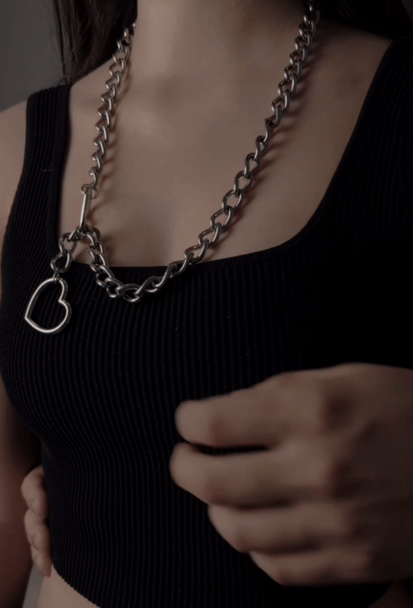Designed with versatility in mind, the Chain can be easily adjusted to tighten around the neck, transforming it into a stylish choker. It's a simple slip mechanism that offers both comfort and control.